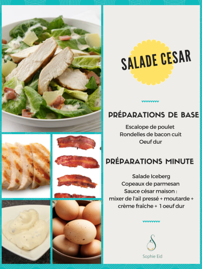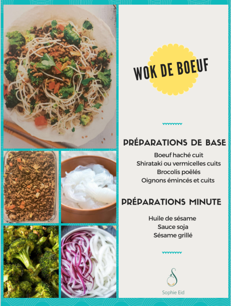 Les "préparations de base" sont ce que je vous conseille d'anticper en amont, un dimanche par exemple et de les ranger au frigo.